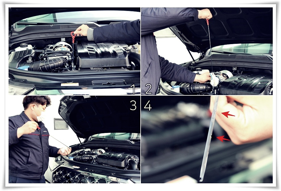 일은 터졌으니 우선 해결을 해야 할 부분이 증가된 만큼의 엔진오일을 빼주어야 하는데요. 기아자동차 정비소 등 센터를 방문하는 것도 한두 번이지 어렵지 않은 게이지 체크방법과 오일 빼기 방법을 알려드리겠습니다.