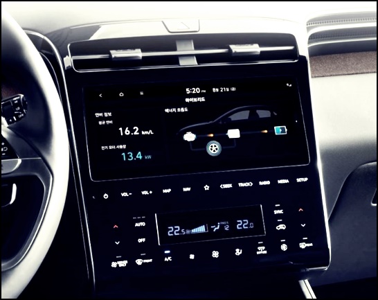 하지만 투싼부터적용된 하이브리드 시스템은 연비 향상은 물론 추가적으로 출력도 상승하고 토크도 상승하여 가솔린+전기 하이브리드의 단점인 출력과 토크의 문제를 해결하여 주행 시 보다 만족스러운 성능을 보여줍니다.